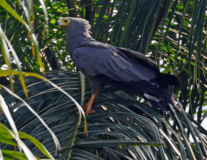 The African Harrier Hawk is also uncommonly omnivorous, eating the fruit of the Oil Palm tree as well as hunting small vertebrates.
