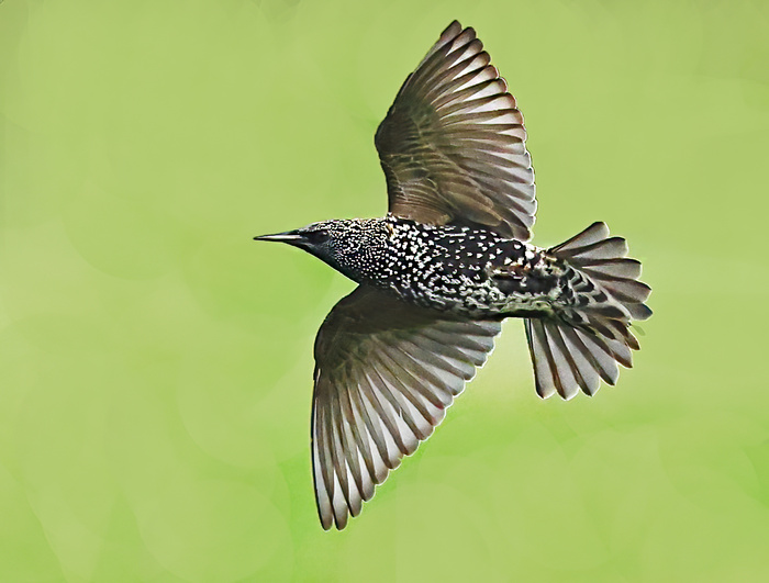 Unfortunately since I bought this camera it has rained virtually everyday with leaden skies and dull flat light - it couldn't be worse| However, this morning for an hour it was drier and I went for a walk on a local canal, the light was still generally very poor and light drizzle hung in the air, but glimpses of sunlight broke through intermittently. I came across a small flock of Starlings flying from a tree where they were perching up down to feed in a nearby field. As they swept across me the camera still locked onto them even in this very variable light.
