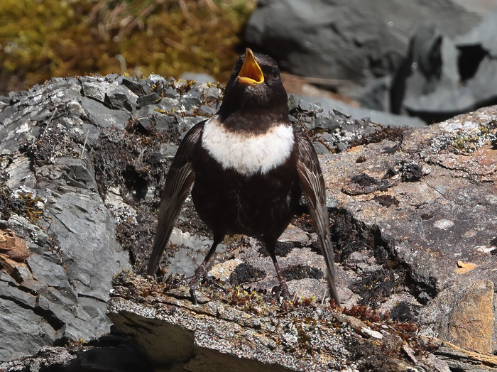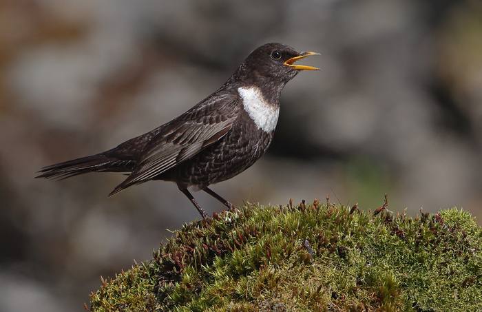 Sometime later a bird perched on an elevated rock and started to call out across the valley, this is typical behaviour for Ouzels – so there was hope. I took some shots which I knew would have to be cropped in later, but never mind I had something.